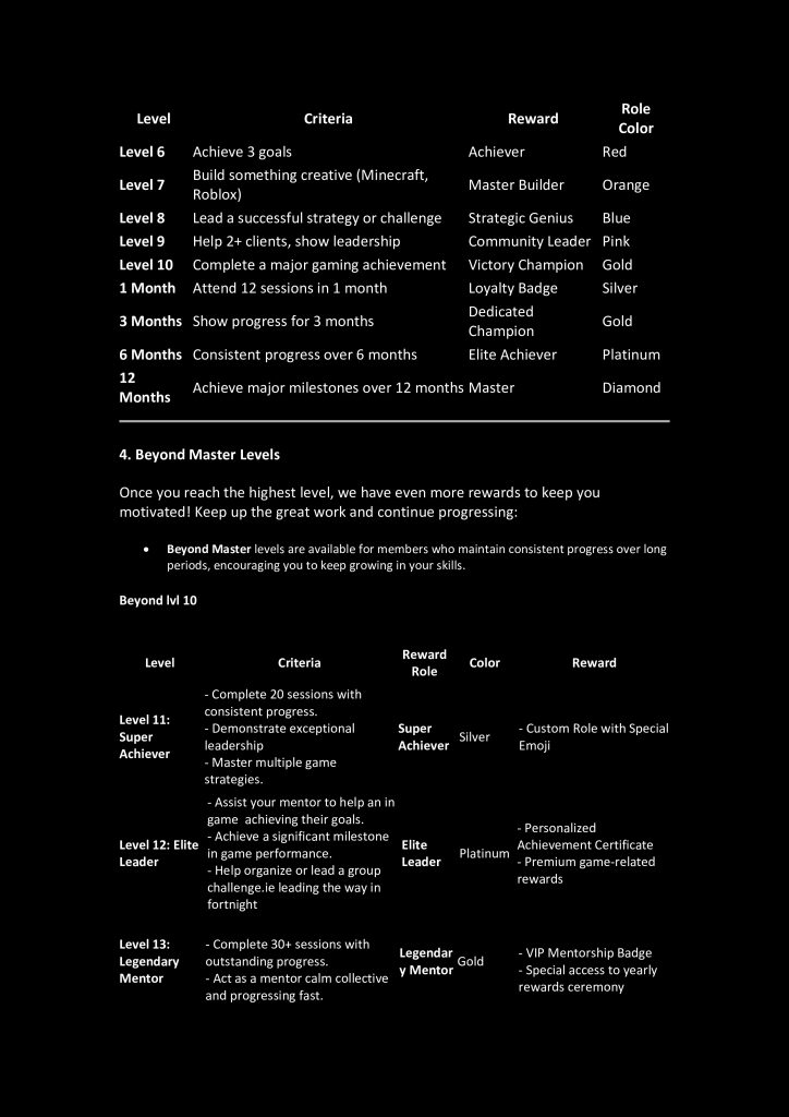 For clients who continue to exceed expectations and show remarkable growth, we have the Beyond Master level — a special tier for those who achieve extraordinary progress. These clients will earn one-of-a-kind rewards, recognition, and opportunities for exclusive events or challenges.
